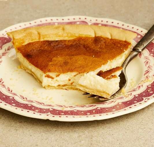 A custard pie made more delightful with the addition of cottage cheese. It can be made in a pastry or graham cracker crust.