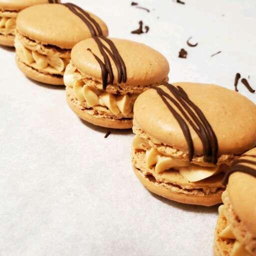 - Pipe a small amount of filling in the center on the flat side of 1 macaron; top with another macaron and press gently to sandwich together.